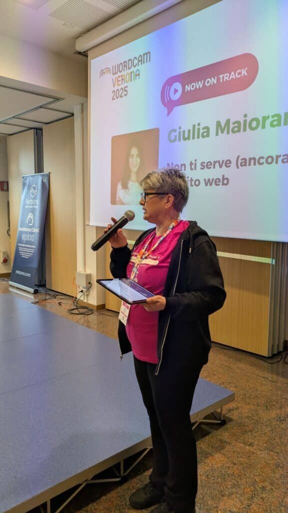 Non mi pento mai di dare una mano, specialmente a Verona, una community a cui sono legatissimo dal primo WordCamp del 2018. Lì mi sento a casa, circondato da volti familiari in una location che conosco molto bene.