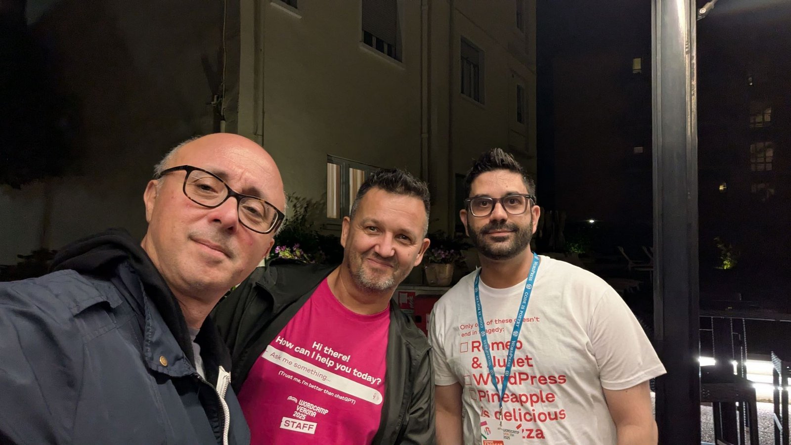 Più che l’evento o le novità di WordPress, ciò che ha reso speciale ogni momento del WordCamp Verona è stato il “fattore umano”, ovvero rivedere gli amici e le amiche di sempre, quell’abbraccio spontaneo appena vedi un volto amico, persone con cui ho condiviso anni di contribuzione, progetti folli come i Core Days o semplici chiacchierate al telefono. Ritrovarsi a Verona è stato come tornare a casa dopo un lungo viaggio, un effetto che mi danno solo pochi WordCamp, e quello di Verona ha sempre questo effetto.